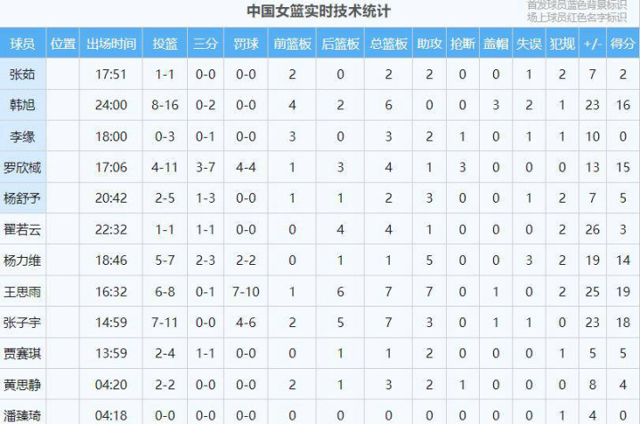 整体来看,球队统计显示,王思雨21分、7板、7助的全能表现令人印象深刻,与此同时,张子宇和韩旭也各有斩获,为团队的胜利做出了重要贡献。