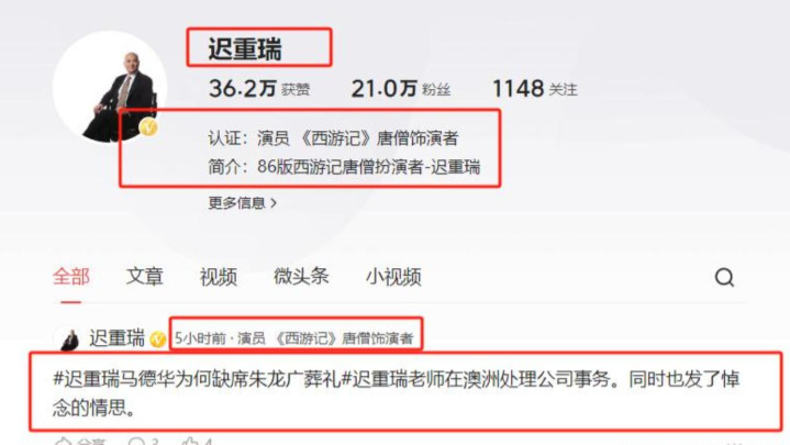 早在朱老师去世时,他就在网上发文悼念了,只是大家的注意力都被六小龄童吸引,没太注意到而已。