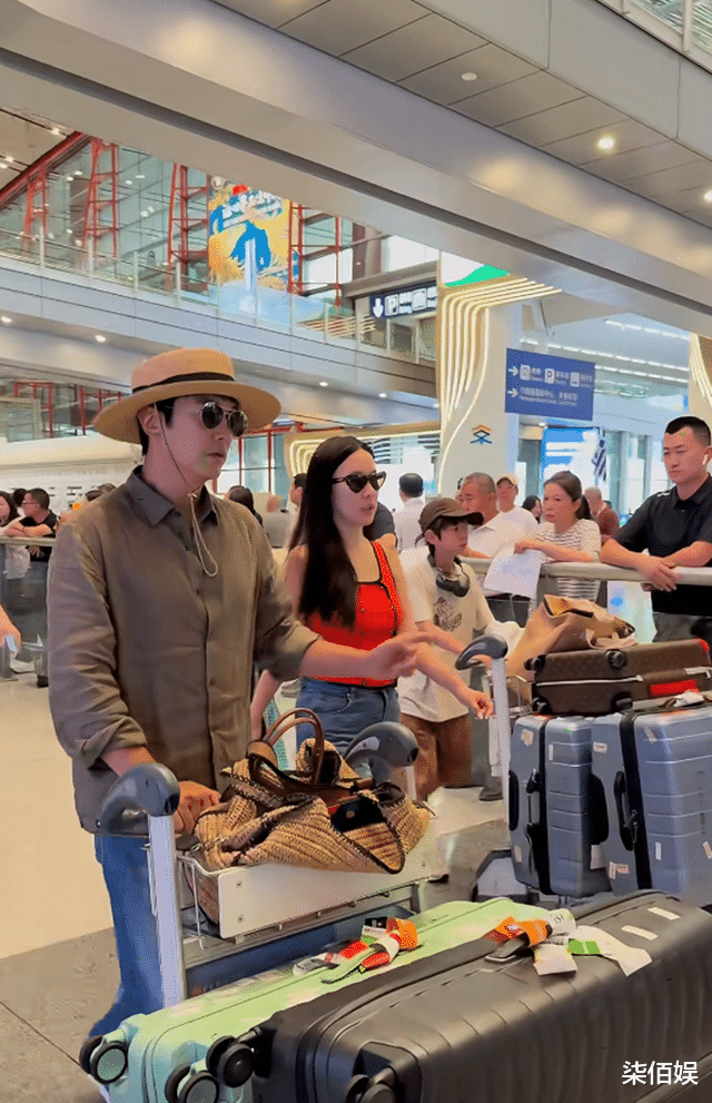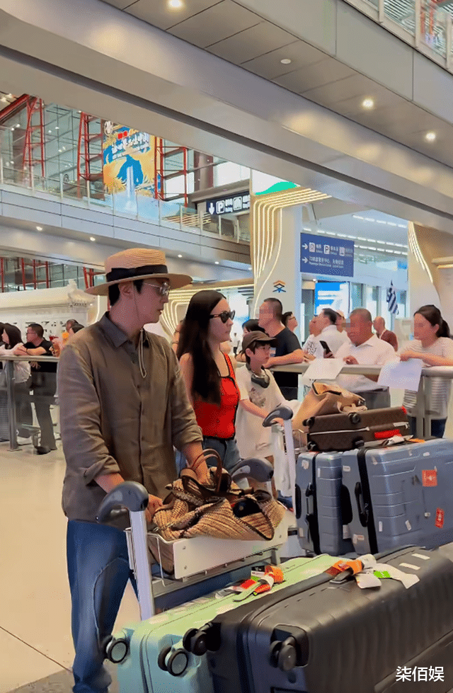 8月12日,有网友分享出在北京机场偶遇到杜江霍思燕一家四口动态,视频中,只见杜江和儿子嗯哼负责推着行李,父子俩一共推着5个大行李箱,上面还有霍思燕的包包。