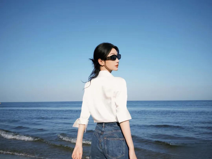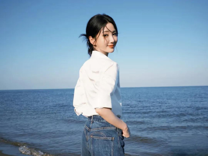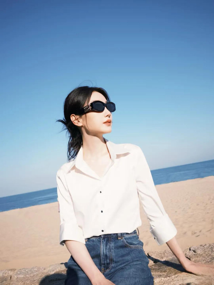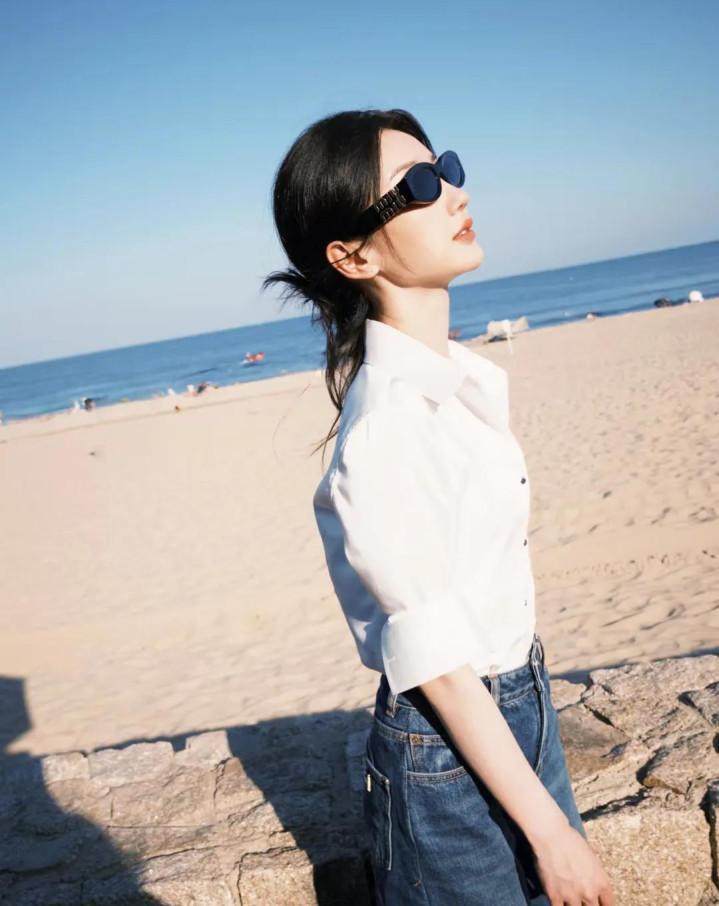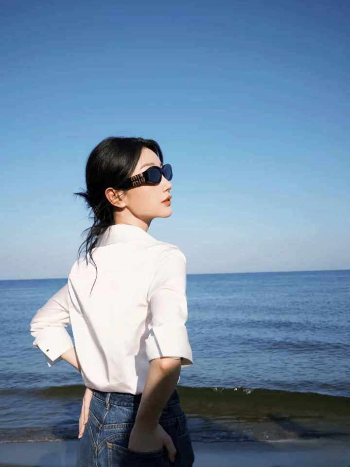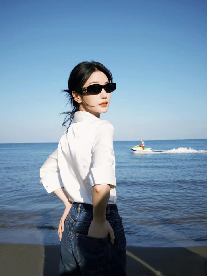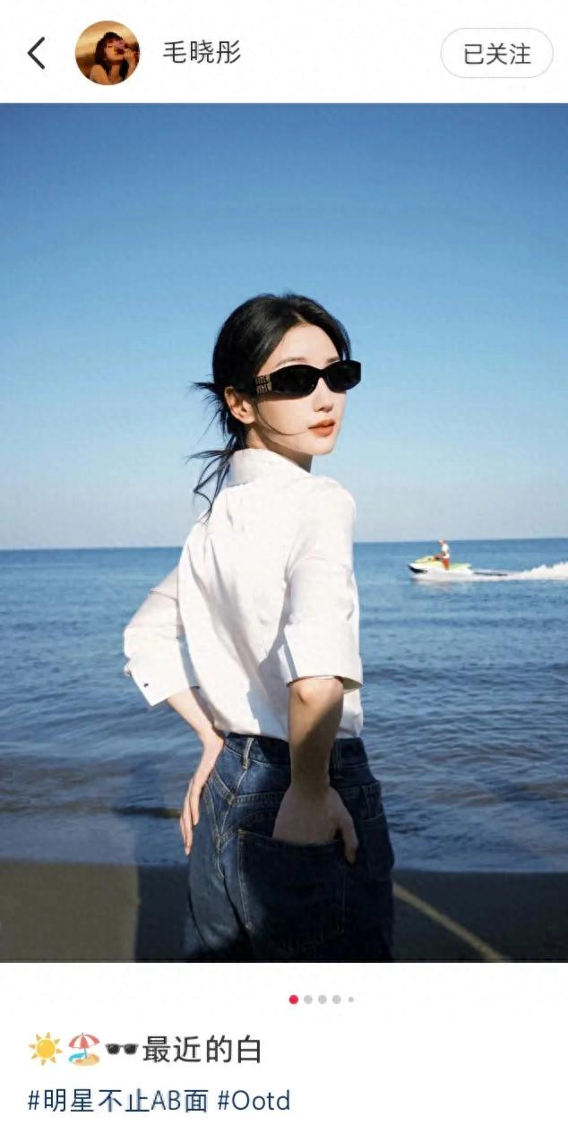 毛晓彤分享美照, 白衬衫配牛仔裤, 简约又时尚, 又飒又美