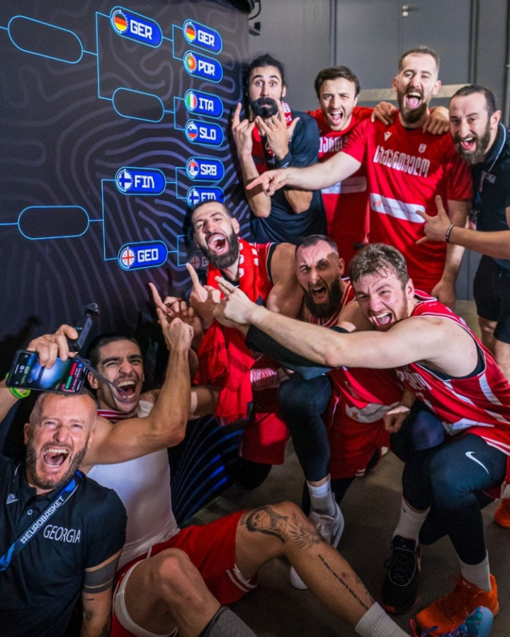 打进八强创造历史! 格鲁吉亚众将在晋级墙前兴奋合影! 直播吧9月7日讯男篮欧锦赛1/8决赛,格鲁吉亚80-70击败法国男篮,成功晋级欧锦赛八强。这是格鲁吉亚男篮历史首次打进欧锦赛八强。赛后的格鲁吉亚众将在晋级墙前兴奋合影。