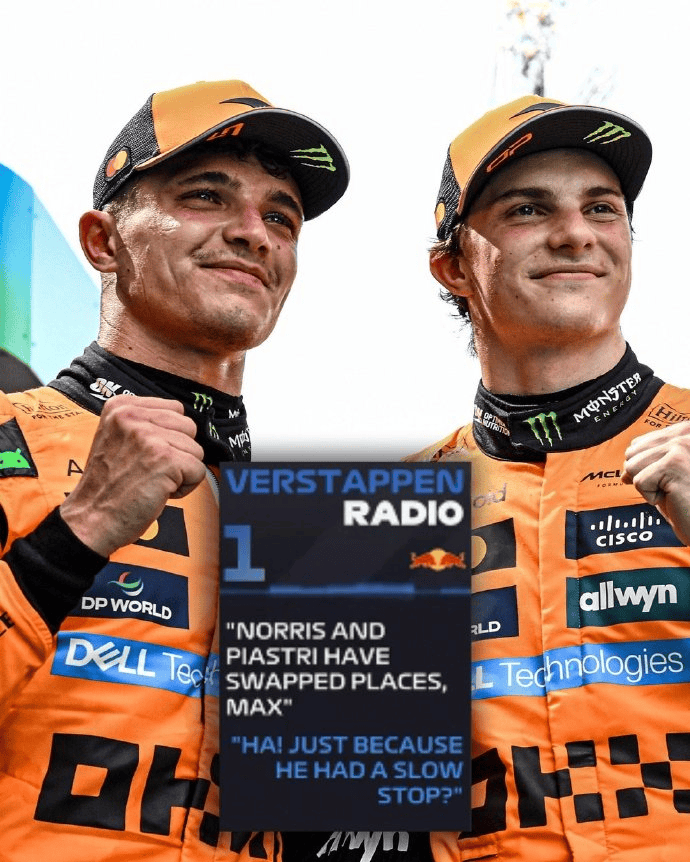 比赛中,维斯塔潘通过无线电对此点评道:“哈!就因为诺里斯进站慢了?”随后比赛工程师兰比亚瑟提醒他专注于自己的驾驶。