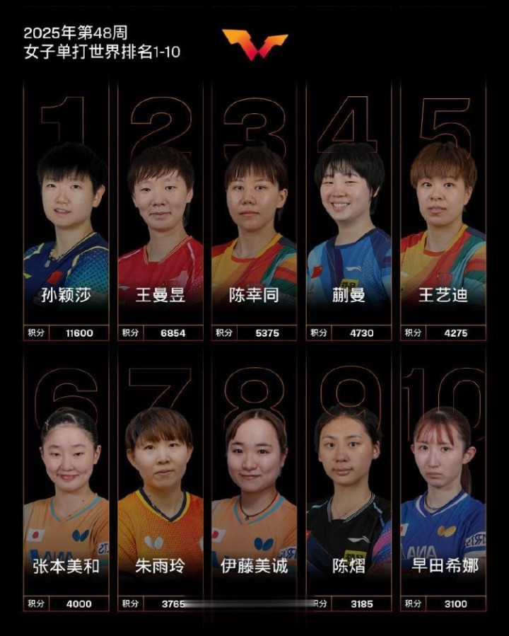 附最新一期女单世界排名top10名单: