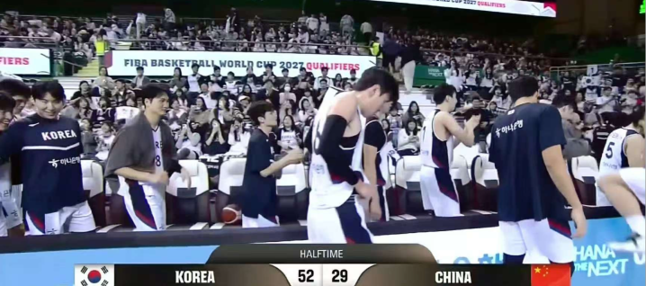 北京时间12月1日晚上6点,男篮世界杯亚洲区预选赛第二场在韩国进行,中国男篮客场挑战韩国男篮。此前首场比赛男篮是76比80不敌对手,今天特别想赢回对手。首发依然是跟上一场的首发一样,依然是周琦,高诗岩,曾凡博,朱俊龙,程帅澎。首节就13比28落后对手15分,第二节依然没有起色,半场结束29比52落后韩国23分。