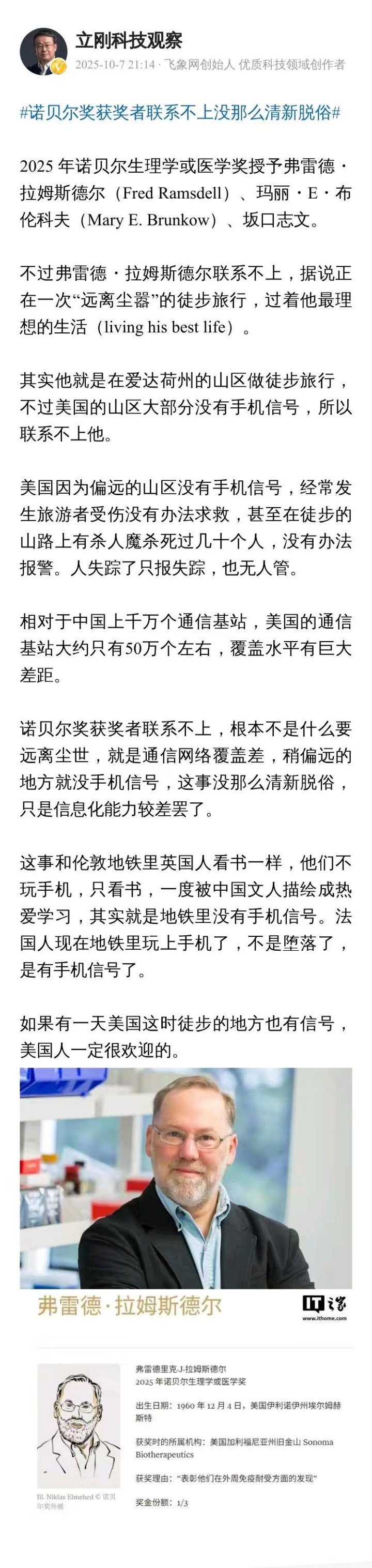 项立刚说,2025年诺贝尔生理学或医学奖授予拉姆斯德尔,不过大家都联系不上他。