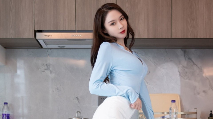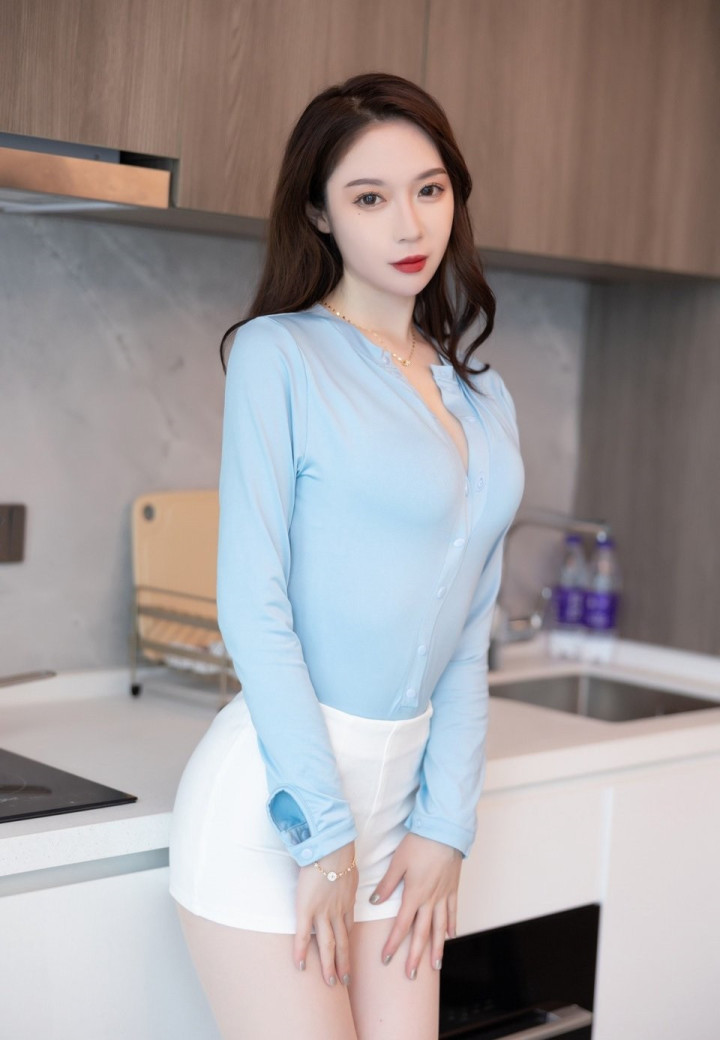 淡蓝长袖衬衫随风轻扬,白色超短裤勾勒纤细腰身,肉色丝袜衬出修长美腿。简约配色间,自信姿态与优雅气质满分,恰似夏日里最动人的清爽风景。