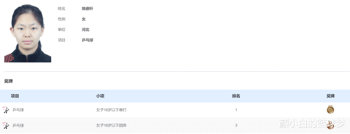 16岁的姚睿轩刚刚在全运会上拿到了女子18岁以下单打冠军与18岁以上团体铜牌,她在女单项目接连击败祝启慧、姜依依、徐慧尧、谢雨萱、刘梓童,不得不说16岁的她已经成为国乒未来的核心。