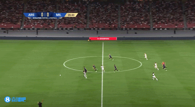 上半场补时阶段,阿森纳角球机会发动攻势,卡拉菲奥里头球吊射,米兰球员门线前完成解围。↓