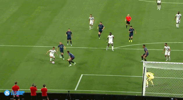第27分钟,米兰反击机会,莱奥长途奔袭后在萨利巴的干扰下将球带出底线。↓