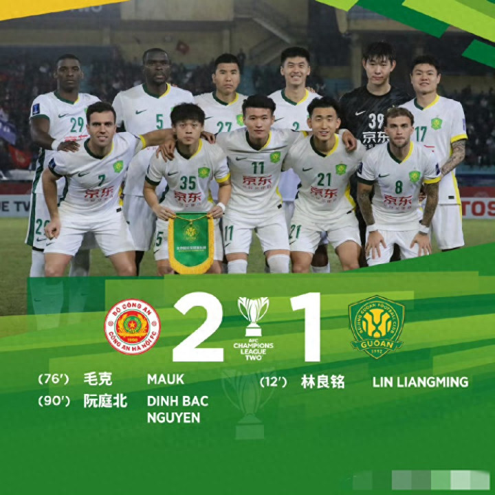 下半场,国安队本来有好几次机会能再进一球,比如张玉宁的射门打在了门框上,可惜都没进。结果,到了比赛最后阶段,情况突然变了。第78分钟,河内公安队的毛克进了一球,把比分扳成了1比1。这还没完,就在比赛快要结束的补时阶段,对方球员阮庭北又进了一球。最终,国安队1比2输掉了比赛。